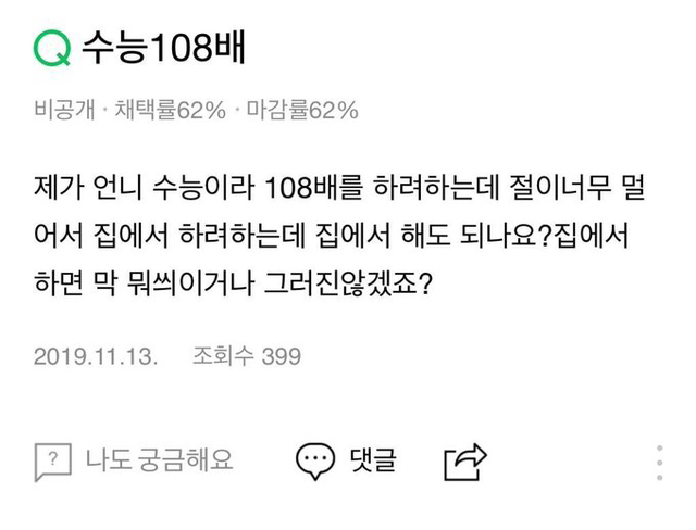 언니 수능이라 108배를 하려 하는데