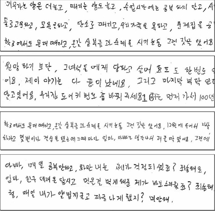 Çϰí, ¸ð¿åÀ» Çϰí, ´Ü¼Ò·Î ¶§¸®°í, ¿ì¸® °¡Á·À» ¿åÇϰí, ¹®Á¦ÁýÀ» °øºÎ ¸øÇϵµ·Ï ´Ù °¡Á®°¡°í, Çб³¿¡¼µµ ¸ô·¡ ¶§