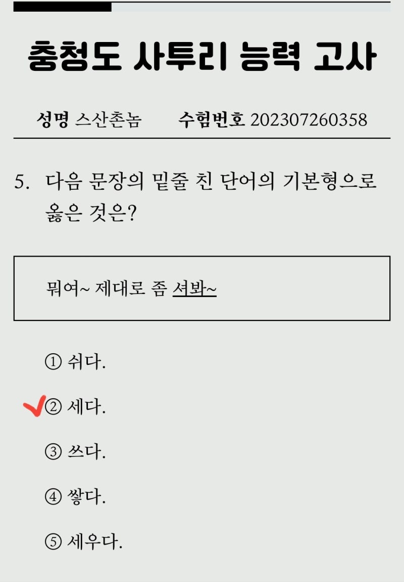 충청도 사투리 능력 고사