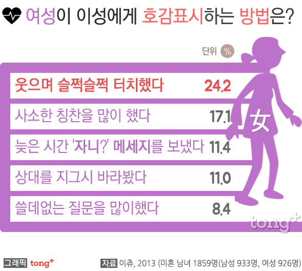 여성이 이성에게 호감 표시할 때