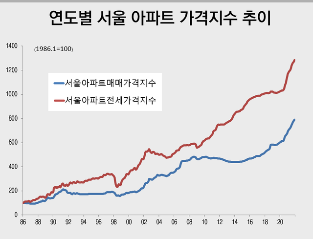 과거 서울 아파트 가격지수